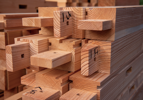 柱やはりなどの横架材を組み合わせて加工(軸組または骨組のこと)を構成し、これを基本として壁、床、屋根などを付加して全体の構造を形成します。